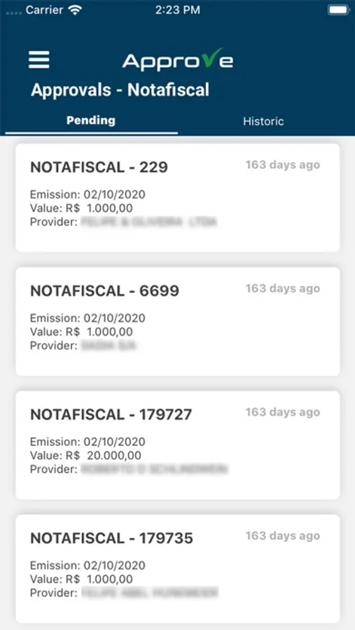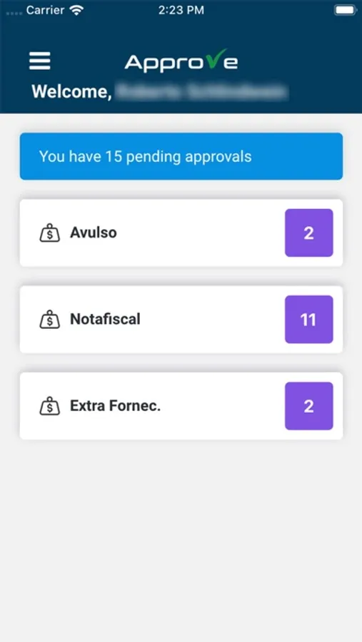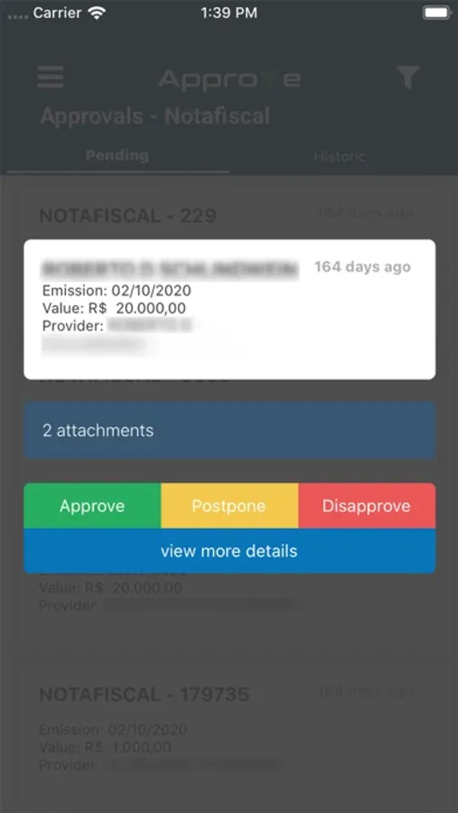A aplicação conta com detalhes de documentos bloqueados no ERP, anexos desses documentos e aprovação dos mesmos