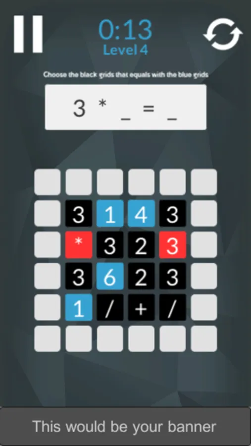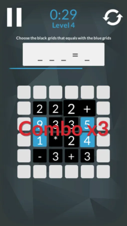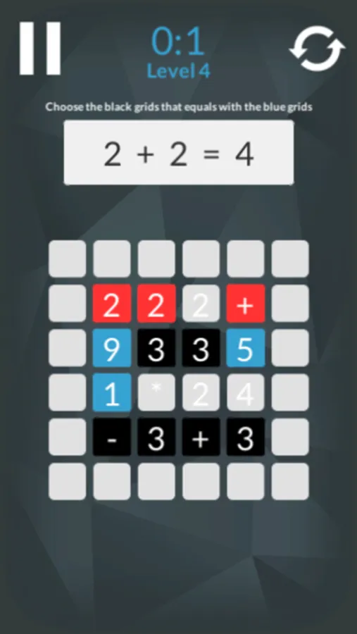 Fun Math is complete puzzle game which requires player’s math and logical thinking skills. Choose the black grids that equals with the blue grid.