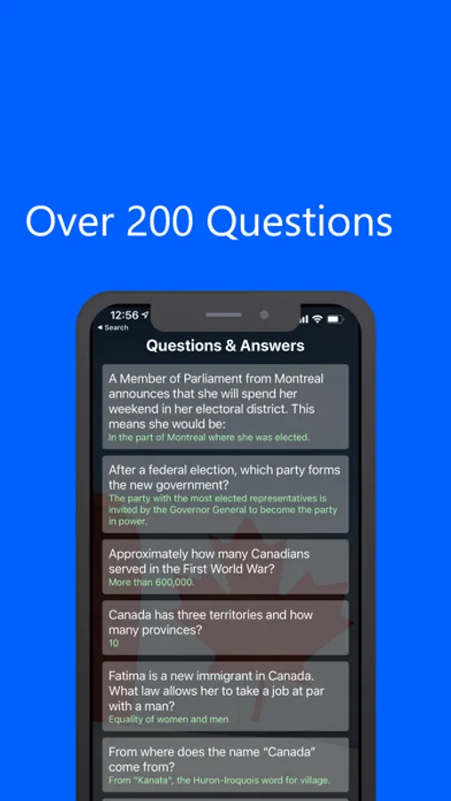 • Includes all 220+ questions and answers for the Citizenship Naturalization Test from Canada