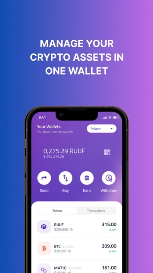 RuufPay Wallet is a universal non-custodial app designed for you to securely manage, earn, exchange & swap Bitcoin, Ethereum, Polygon, USDT and thousands of other cryptocurrencies in the palm of your hand. We’re bringing the benefits of DeFi to users of all skill levels without the hassle of having to bridge networks or link up to decentralized exchanges. You can now do it all within your RuufPay Wallet!