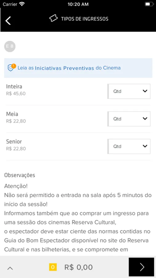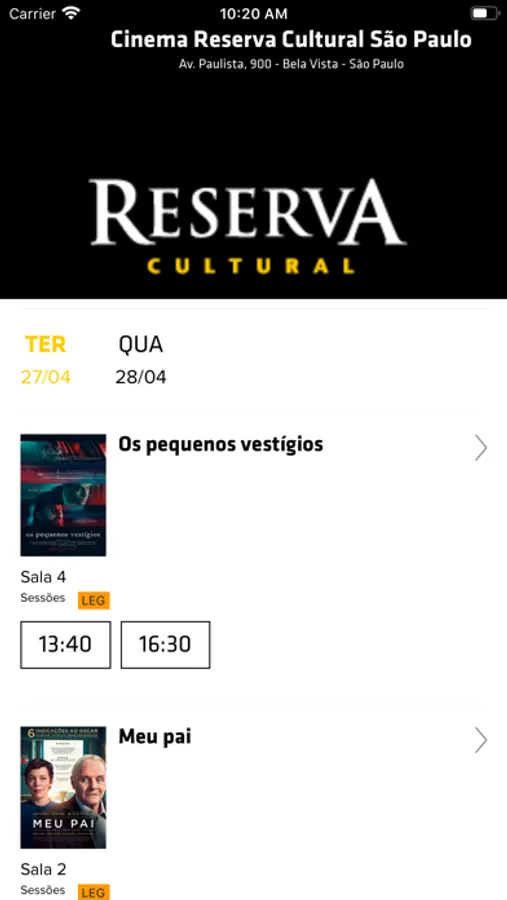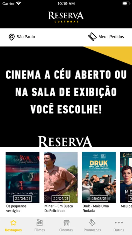 No aplicativo do Reserva Cultural você garante o seu lugar favorito na frente da telona. Navegue pelas sessões disponíveis em nossos cinemas, confira os horários e compre os seus ingressos de forma rápida e segura.