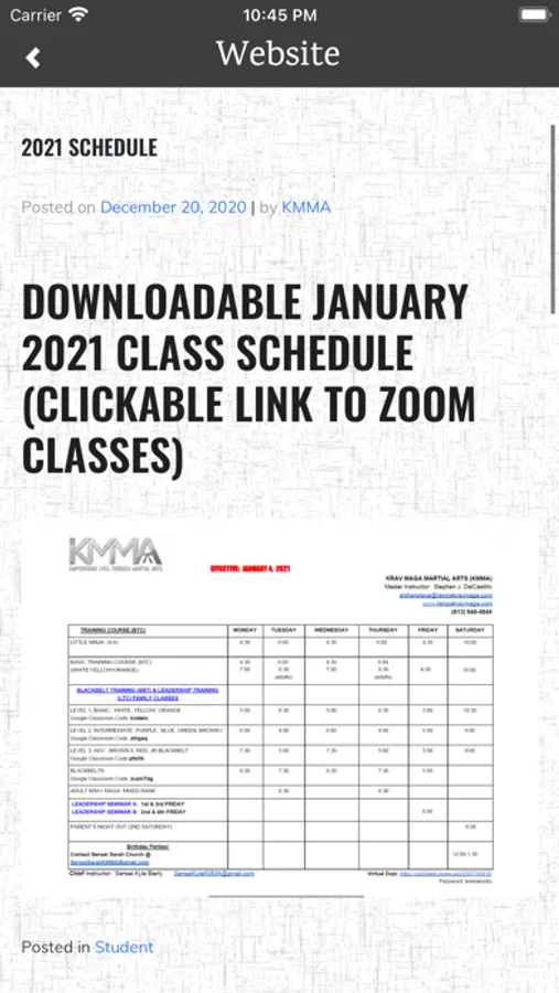 Students of KMMA will have easy access to the student website, google classroom, student schedule, contact information, blog, podcasts and website to shop for gear you will use in the classes.