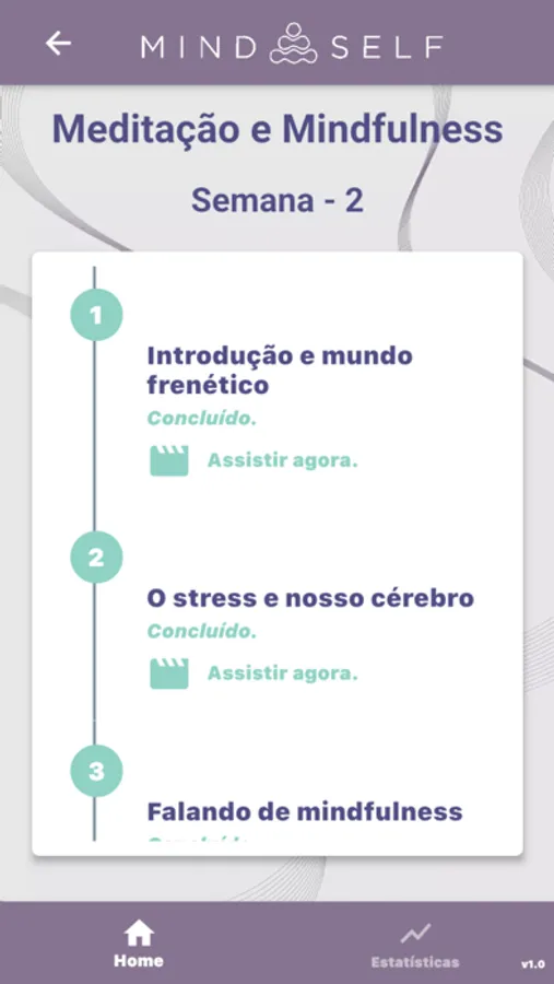 No APP você vai encontrar diversas práticas guiadas, sons para meditar com opção de escolher o tempo de duração das sessões, e também o nosso exclusivo Curso de Meditação e Mindfulness, com tudo o que há de mais moderno sobre o assunto no mundo, 100% disponível para você experimentar no seu ritmo.