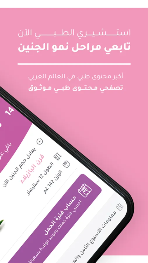 يتيح لك التطبيق إمكانية استشارة أطباء ذو خبرة خلال دقائق وعبر الانترنت للاجابة على كل استفساراتك الطبية خلال الحمل، كما ويعرض لكِ مقالات إرشادية عربية مخصصة ومقاطع فيديو ونصائح متعلقة بالحمل والأمومة لتتمكني من التعامل مع أعراض الحمل ومتابعة نمو الجنين خطوةً خطوة لتنعمي بحمل صحي وولادة آمنة.