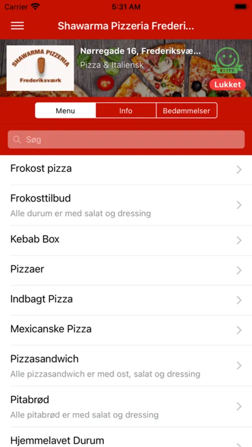 Bestil pizza, burger, pasta, m.m. med få tryk, nemt og hurtigt!