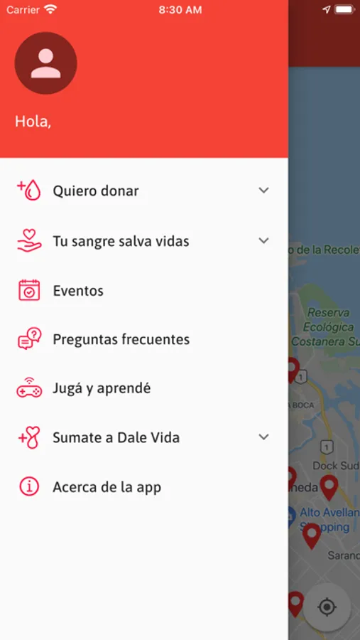 • Enterarte de eventos y campañas de donación de sangre organizados por Dale Vida