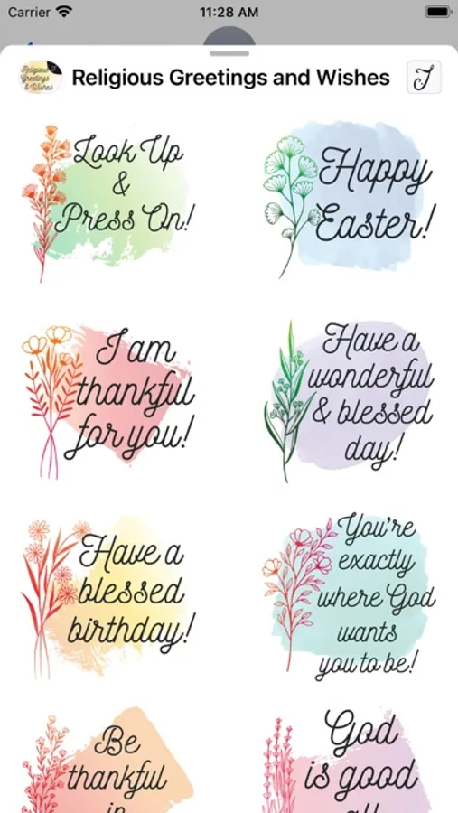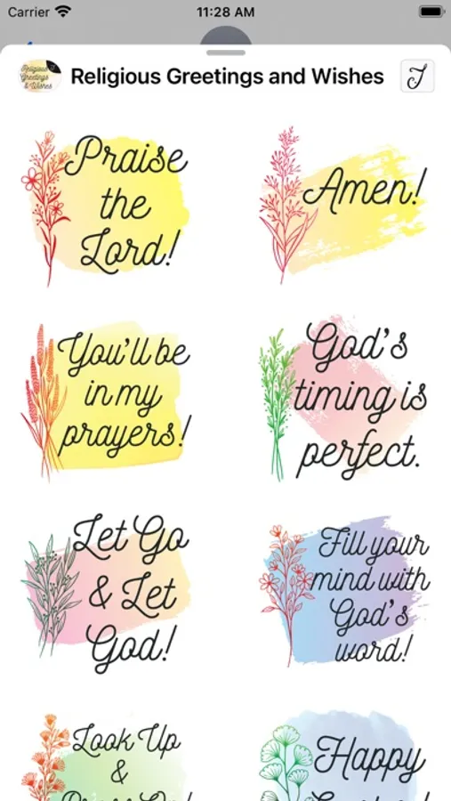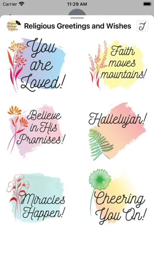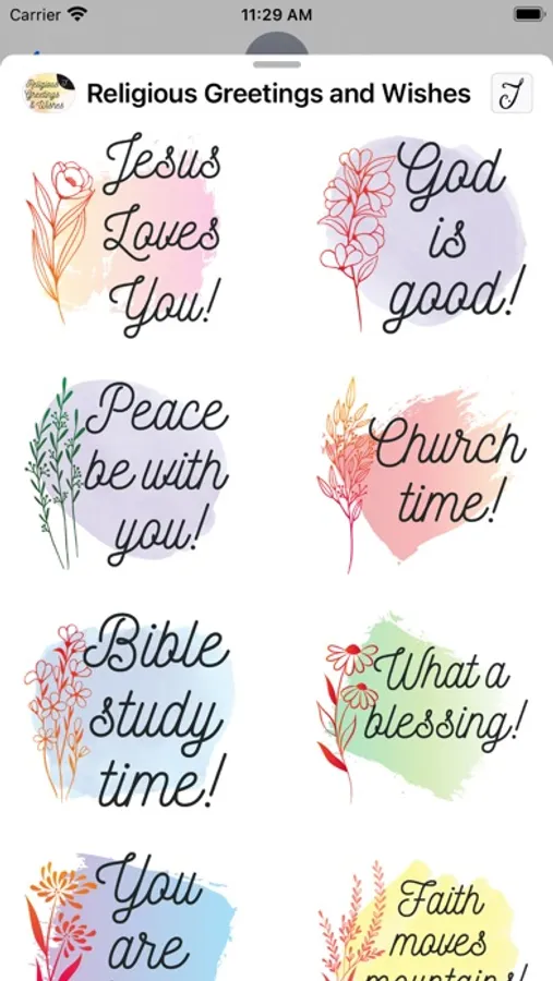 This iMessage Stickers pack comes with commonly used religious greetings and wishes. Instead of typing in your greetings, you can now send your friends and family these well-designed religious greetings as stickers (decorated with watercolor background, flowers and greenery). Make your text message more personal today.