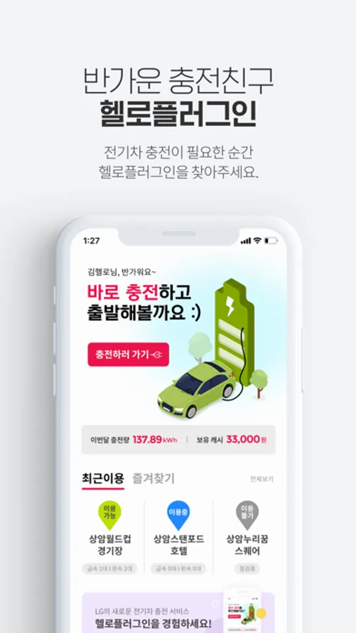 Hello 플러그인은 LG헬로비전에서 런칭한 전기차충전서비스 브랜드입니다.