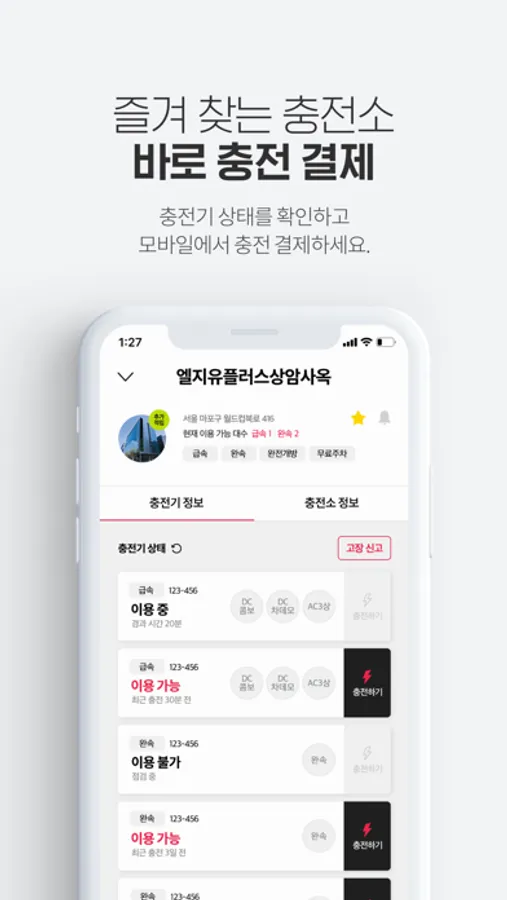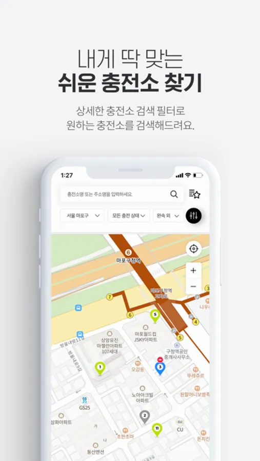 전국의 전기차 충전소 중 나에게 딱 맞는 충전소를 쉽고 편리하게 찾을 수 있습니다.