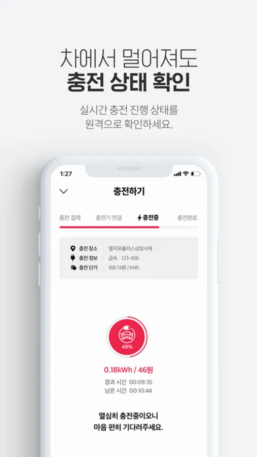 충전 진행상태를 실시간으로 체크하고, 충전완료 시 즉각 알림을 받을 수 있습니다.