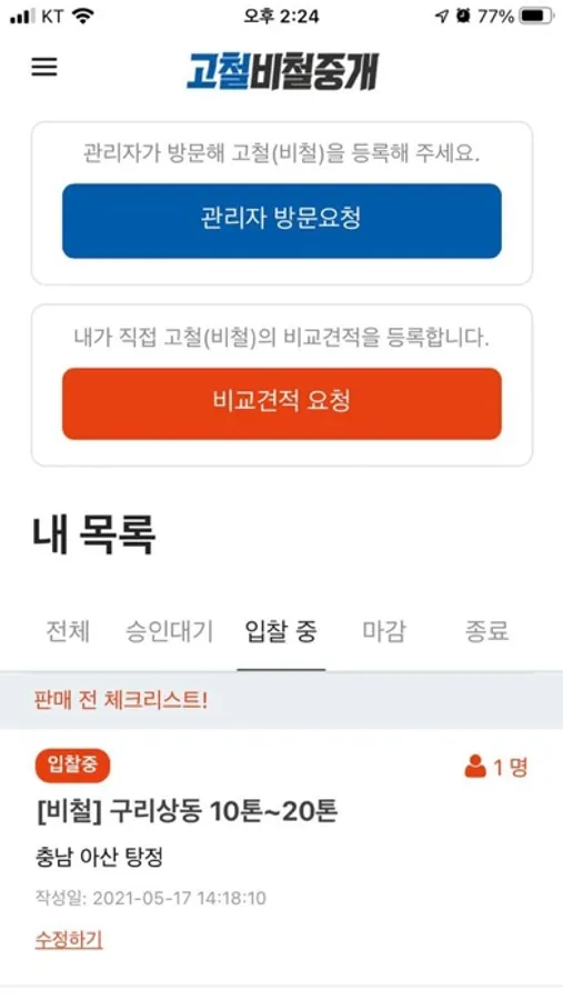 1. 철스크랩 사진만 올려도 중개가 됩니다.