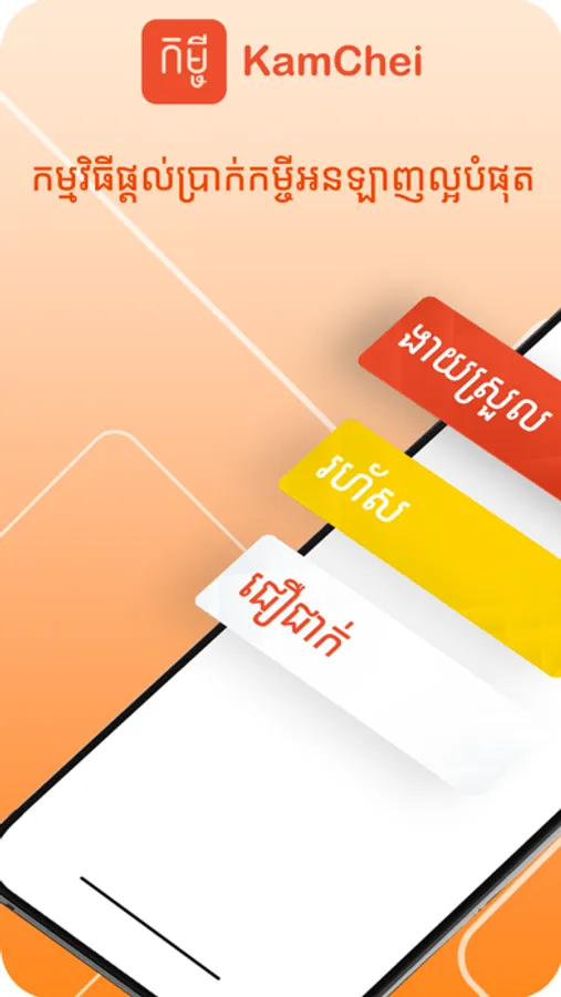 KamChei is a reliable, fast and easy online loan app using modern technology to help solve urgent financial problems for daily expense of our Cambodian people.