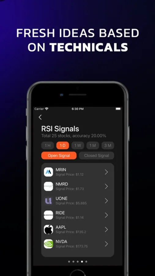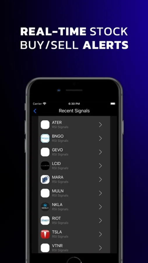 Swing signals are instant in our stock alarm app. You can also create your list of stocks and get alerts based on custom indicators you create. You can get an alert when a stock is above or below, a moving average or above or below a price. Using this stock alert or trading simulator app, you can buy and sell the most profitable stocks in time.