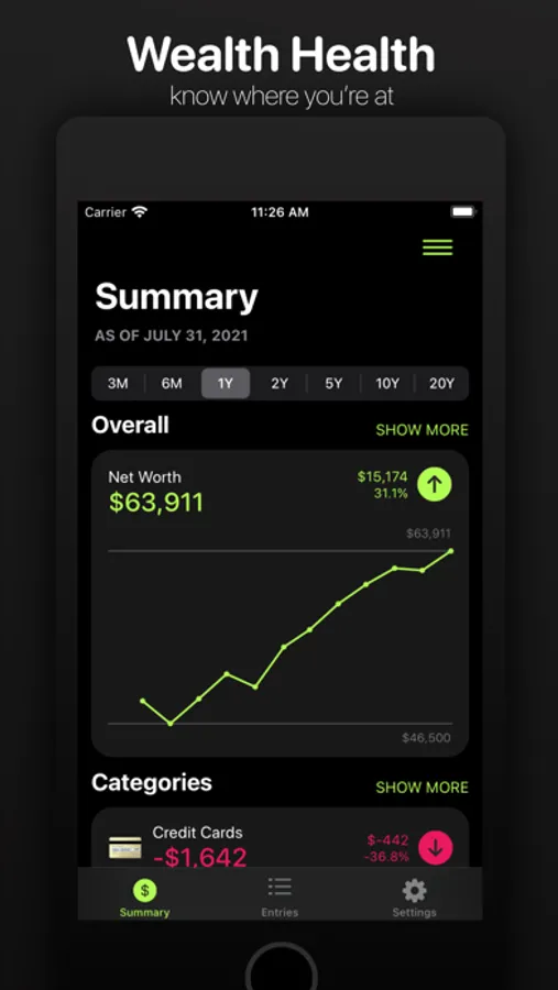 Tracking your net worth is a great way to help understand your financial health. Net worth is simply all that you own and owe together in a single number. Wealth Health is designed to show you the trends behind your net worth, and to help you in your journey to becoming financially fit.