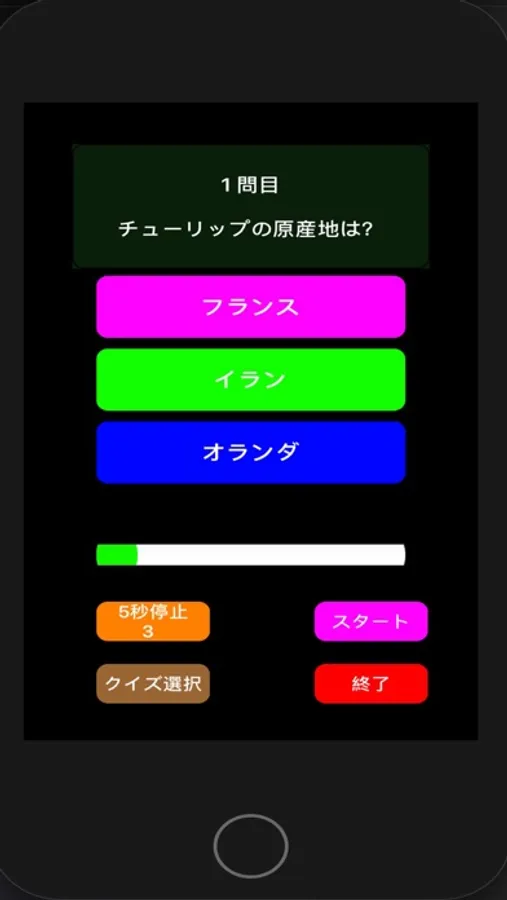1問題15の質問で構成され、ゲームをスタートするごとに質問は順番を変えて表示されます。