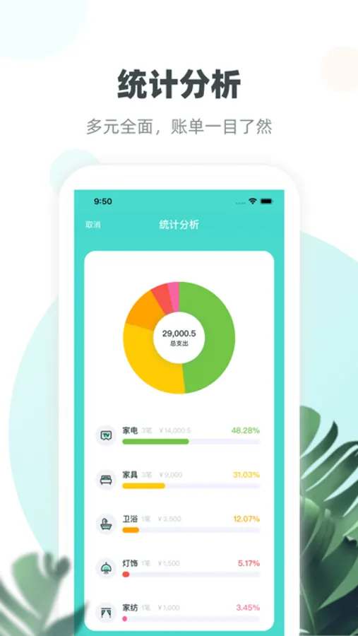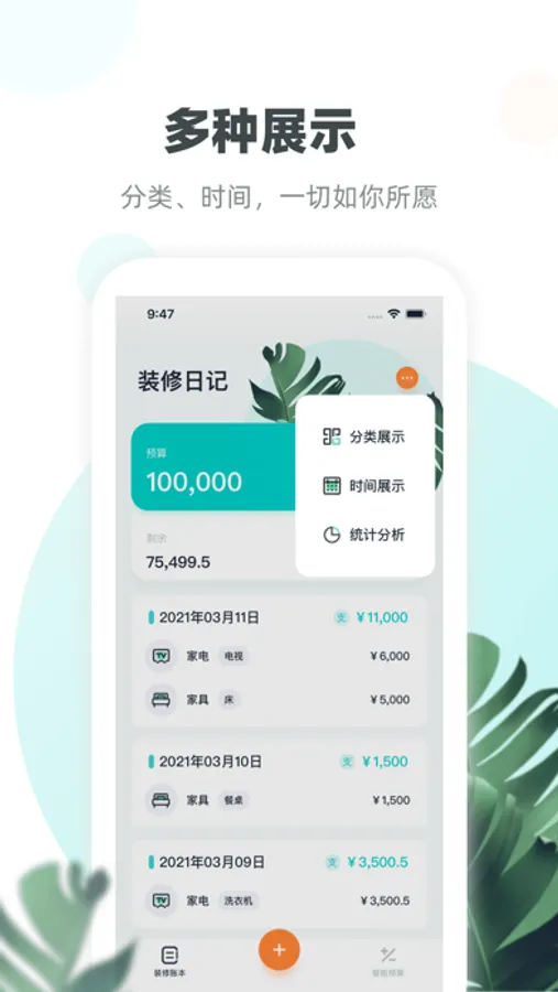 装修记账软件针对装修用户精心设计,助您随手记账,省去劳累。