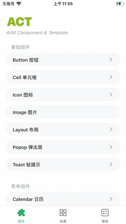 在组件化开发的框架下,参考了业界使用率比较高的 Vant 组件库来作为设计范本, 使用 AVM 的组织方式来实现了ACT(AVM Component & Template.)。