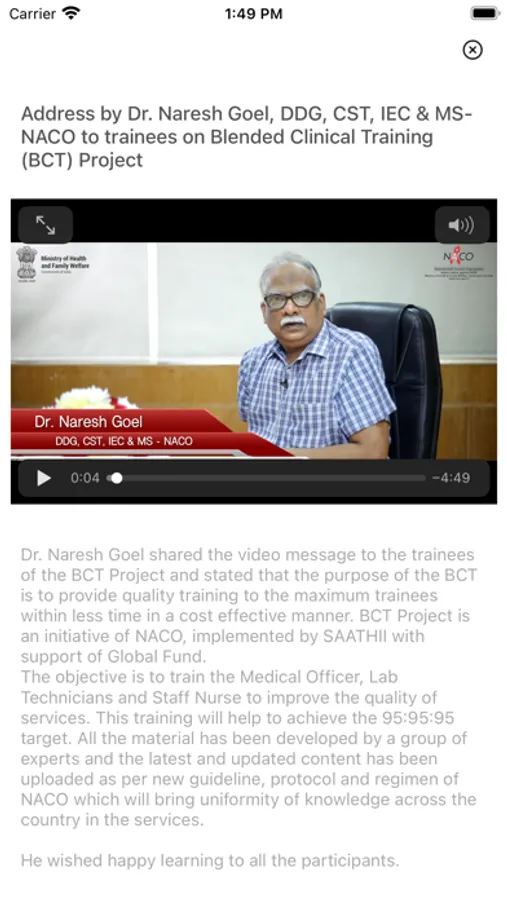The objectives of the Blended Clinical Training under the National Aids Control Organization is to encourage self-learning amongst the healthcare staff working under the National AIDS Control Program (NACPand enable them to learn at )their own convenient time and pace. The courses are intended to update the healthcare staff working in ICTC, ART, Lab Services Division under the NACP, with the latest technical and operational guidelines, quality documentation and reporting. Through this activity, NACO hopes to improve the quality of services provided to PLHIV and improve their quality of life in the long run.