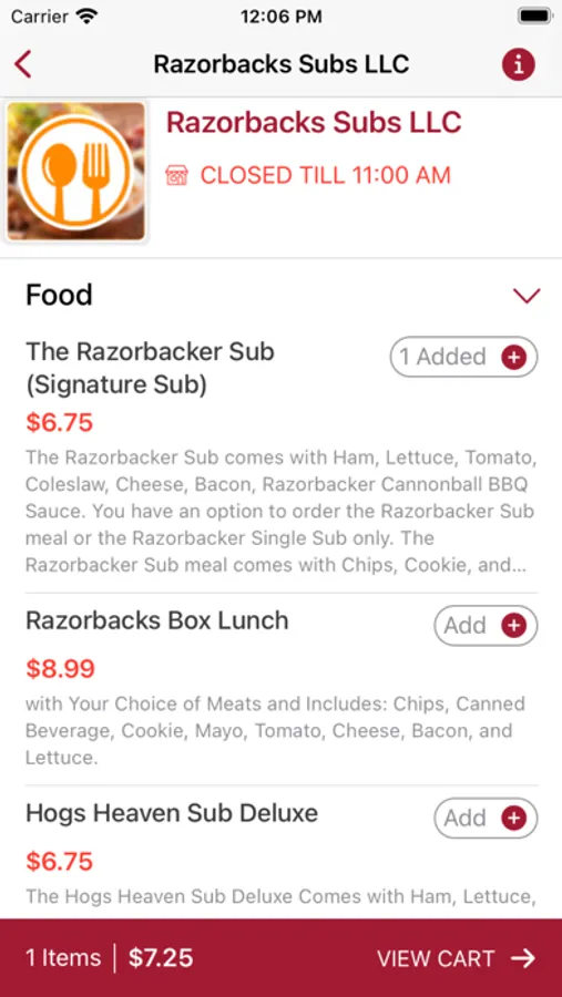 1. Get the Razorbacks Subs’s Online Ordering app and conveniently order from anywhere on your iPhone.