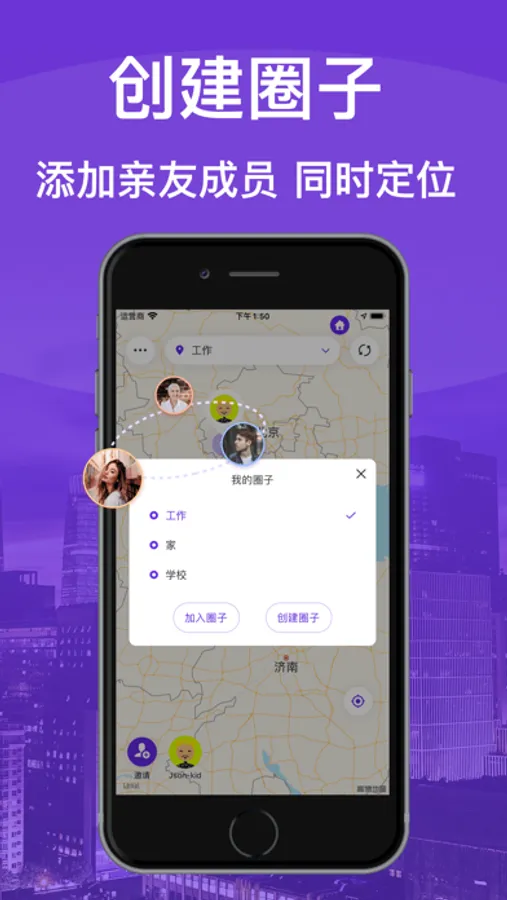 创建自己的圈子,邀请亲友加入圈子,和重要的人分享您的位置