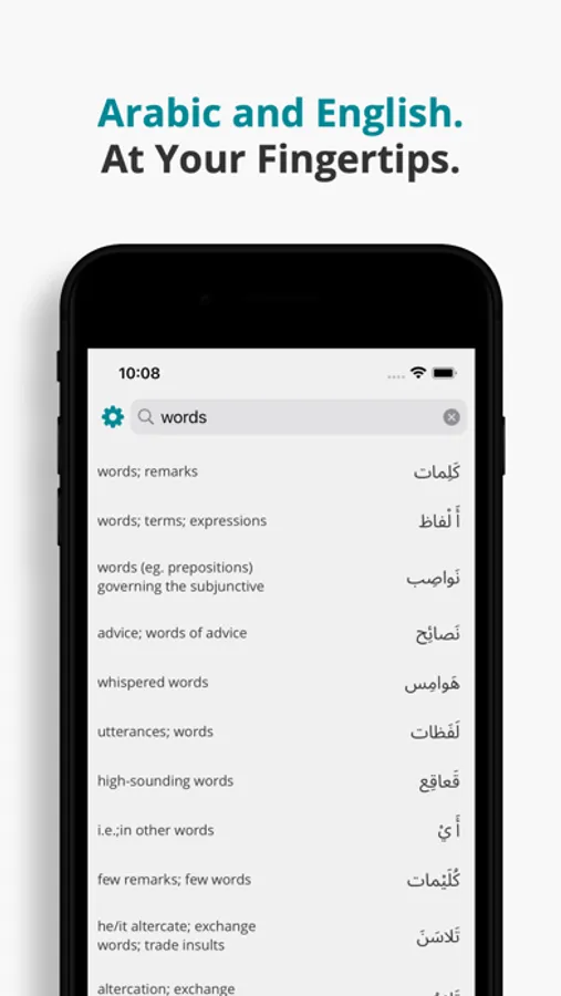◆ Bidirectional lookup support for Arabic to English or English to Arabic. Just start typing in either language using the iOS English and Arabic keyboards.