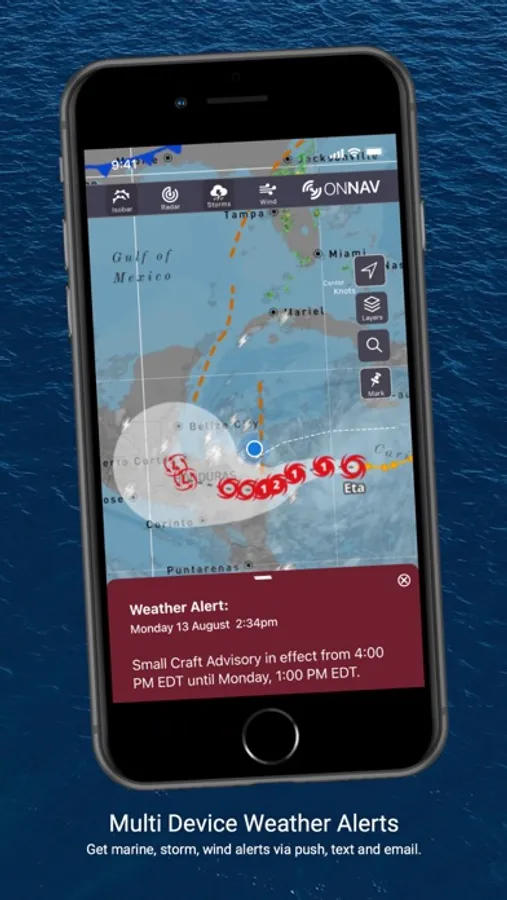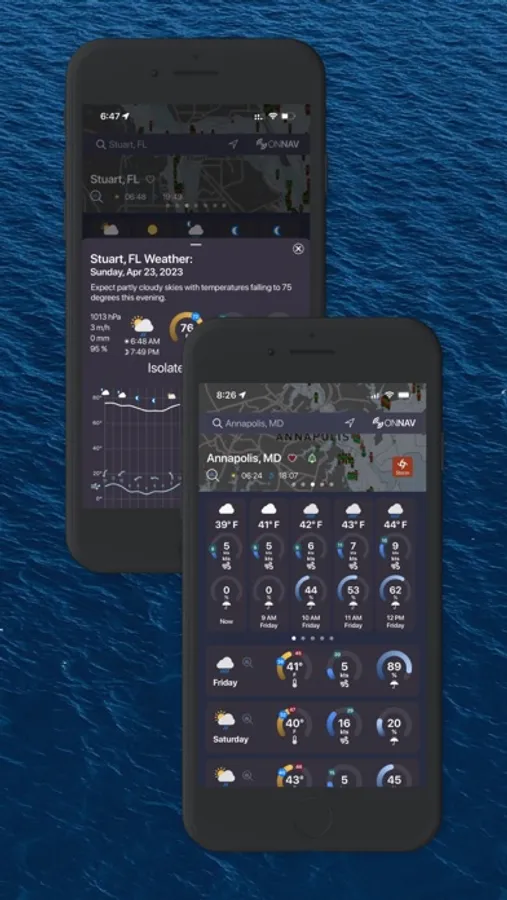 In addition to its safety features, onNAV Marine also provides up-to-date weather information. This includes weather buoys, tide and wave height, and alerts for storms, hurricanes, and other dangerous weather events in your area. Customizable weather alerts allow you to set up alerts in your area, ensuring that you're aware of potential hazards on the water.