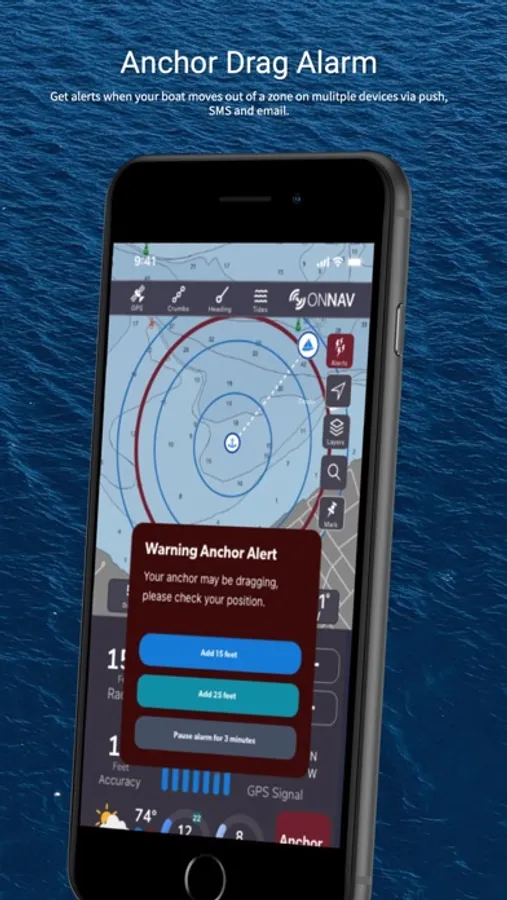 But onNAV Marine is more than just a charting app. It also includes a range of safety features that will help keep you and your passengers safe on the water. One of the most valuable of these features is the multi-device anchor drag alarm. If your in cell coverage or have Starlink, it can send an alert to your email, iPhone, iPad, or iWatch if your boat anchor moves or drags while you're on or on shore. This feature provides peace of mind and ensures that you're always aware of any changes in your boat's position, helping to prevent accidents and keep you safe.