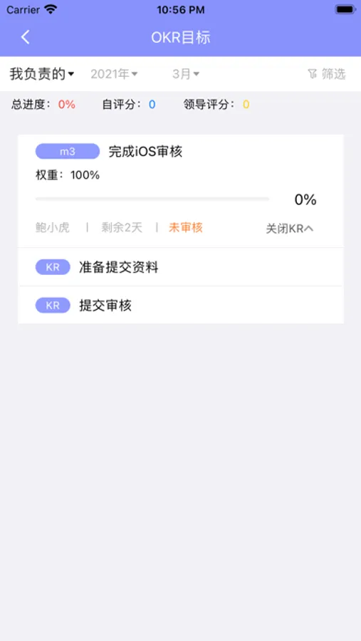 管理者可以通过看板,了解成员OKR的完成度等情况。