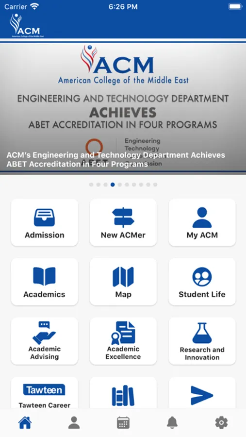 The official mobile app of the American College of the Middle East (ACM) helps you to stay connected with ACM like never before. As student, new applicants, alumni or general visitor you will have access to many information related to Campus life, Admission, Academics, Events and Library in additional to many other features that makes your campus experience more effective, more efficient and more fun.