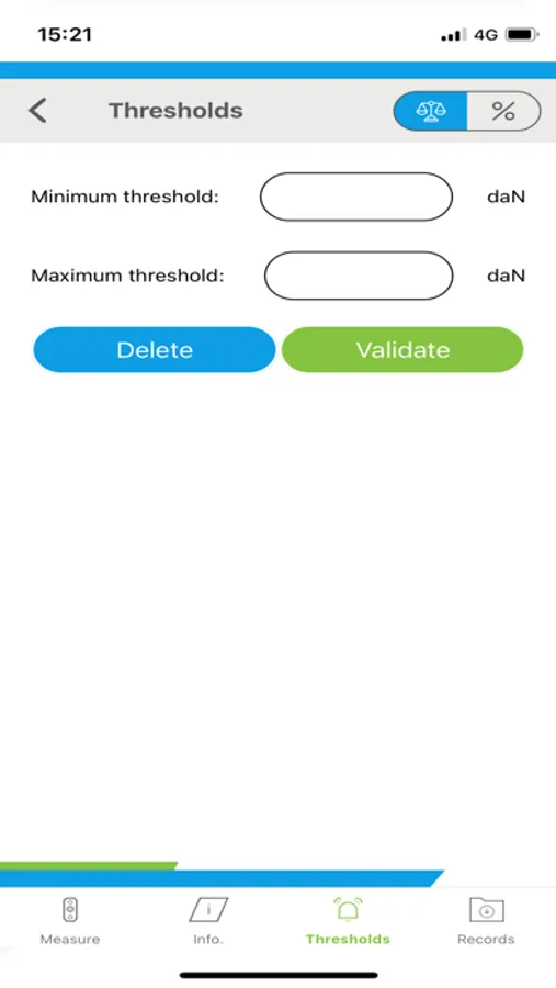 - Thresholds setting (low and high value) with visual and audible alarm alert
