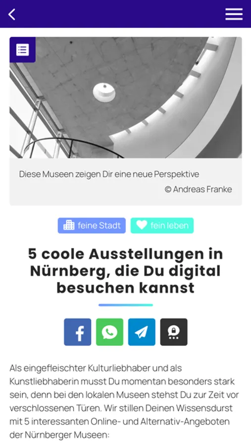Wir sind jung, authentisch und frech. Wir lieben das Urbane genau so wie das Heimelige in Nürnberg, Fürth und Erlangen. Wir legen Wert auf nachhaltiges, schönes Leben und suchen dafür nach Inspirationen vor Ort. Wir lieben Kultur und feine Küche, Lifestyle, Mode und Musik. Und wir geben Dir Tipps, die Dein Leben in unserem Städtedreieck bereichern sollen.