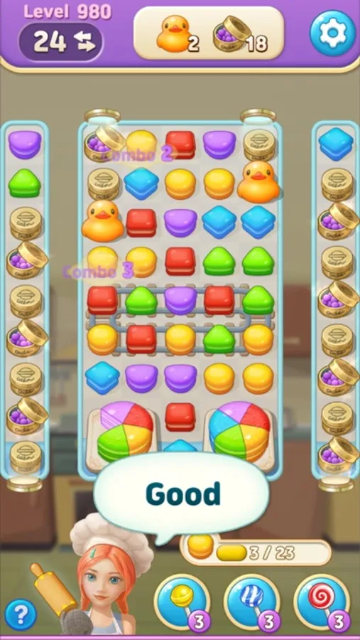 Use the Pastry Bag to create a diagonal blast, or try the Rolling Pin to easily POP the same colored puzzle pieces at once!