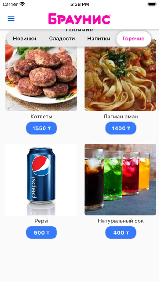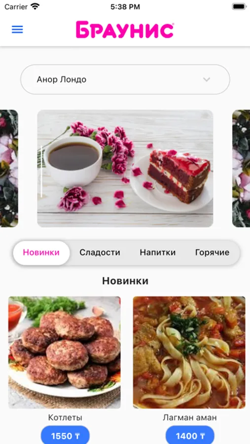Мобильное приложение кофейни Браунис, в котором вы можете ознакомиться с меню и заказать в один клик всё что Вам понравится