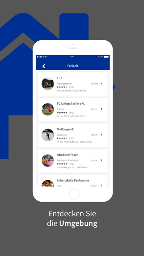 Informieren Sie sich z.B. über Geschäfte, Ärzte, Erstatten und über die Öffnungszeiten in Ihrer unmittelbarer Umgebung.