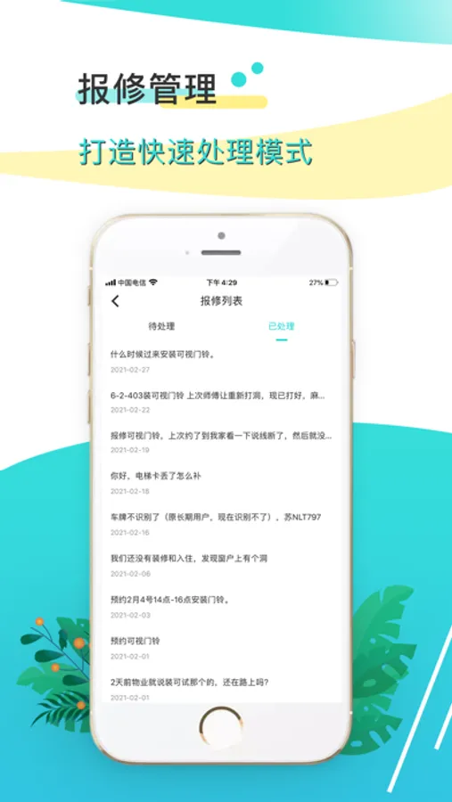 主要供梧桐家园物业人员使用,可在线查看报修以及投诉意见,可直接在手机端处理社区投诉及保修事务,为物业人员提供极大的便利。