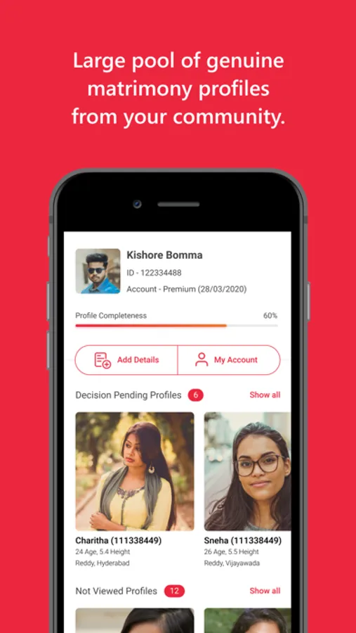 Our smart and light matrimony app with customized features helps to narrow your search for profiles.