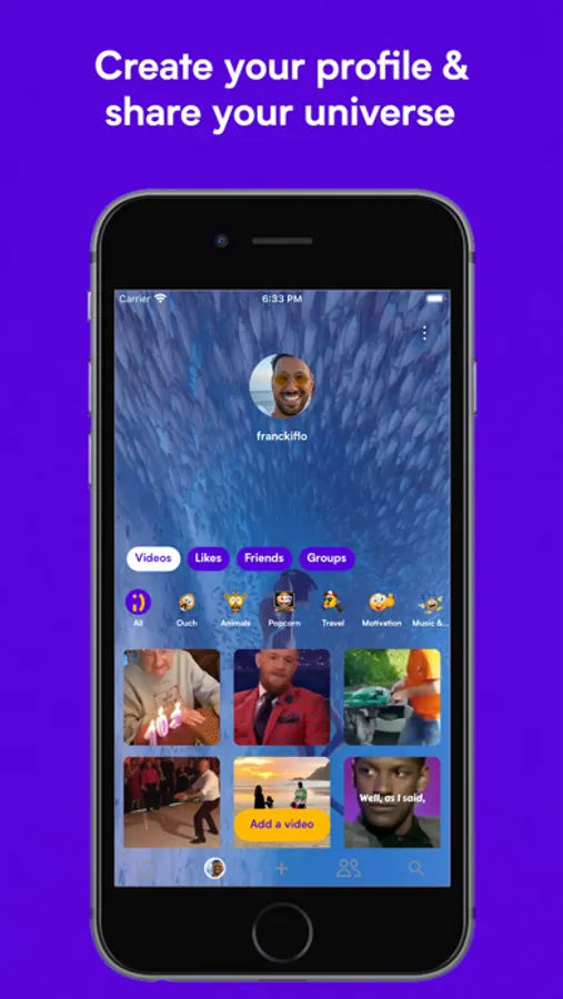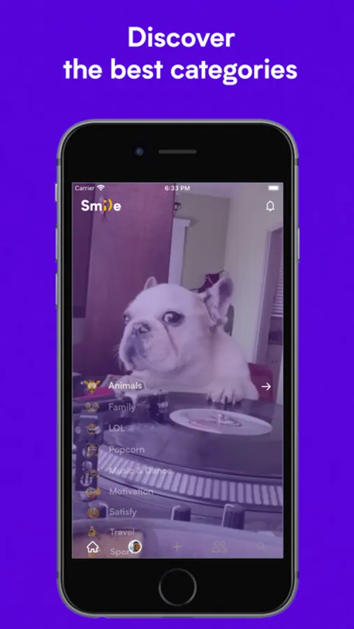- Create your profile and share your own videos or those already available on Smile, and let people discover your world.