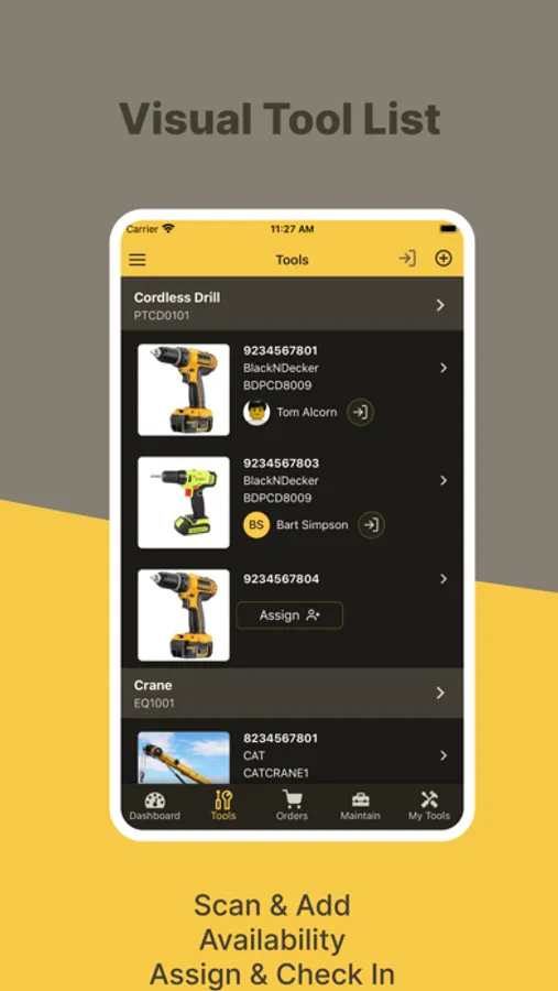 - Central Tool Catalog to keep log of tool across different job sites and tool rooms.