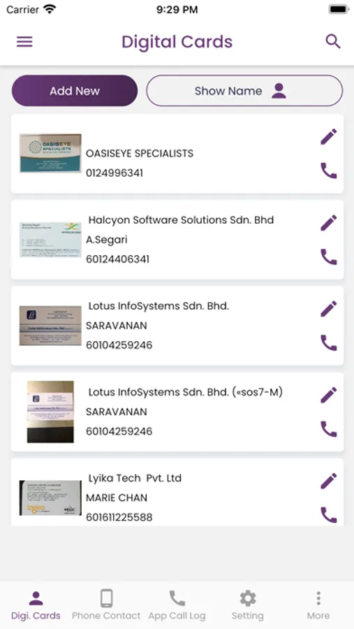 Scan and Organise cards group by company: If you have more than one contact with the same company, then just scan the first business card and add more cards under the same company. This enables you to view all the contacts under that company easily and communicate.