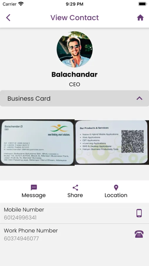 View Contacts: View contacts details, business card and profile pictures. View the details. Just click on SMS, WhatsApp and Get directions for the address by using location.