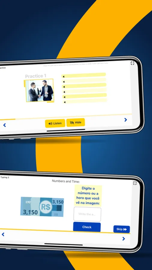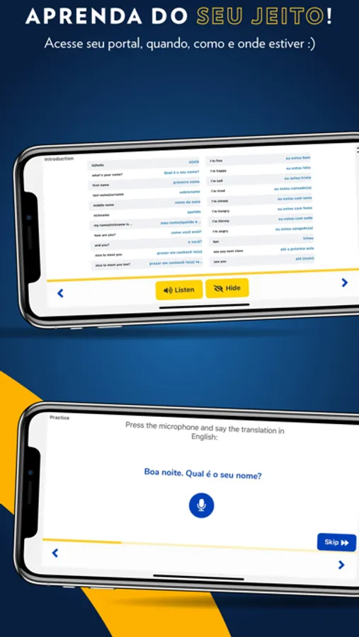 - Exercícios interativos de speaking com reconhecimento de voz e validação por A.I.