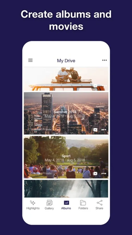 My Drive is a personal cloud app to backup and organize all your photos, videos, music and documents in one place. With My Drive, you never worry again about losing all your personal data even if your device is lost. You can safely backup all the contents of your phone to the encrypted My Drive Account and access them anytime and anywhere.