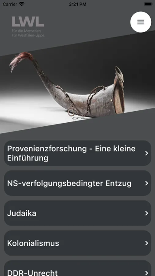 App zur Ausstellung "Geschichte der Dinge. Zur Herkunft von Objekten in nordrhein-westfälischen Sammlungen"
