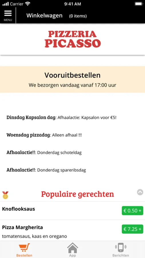 Download onze app en blijf op de hoogte van het laatste nieuws en de nieuwste acties, aanbiedingen en kortingen. Via onze app kunt u onze menukaart bekijken en direct vanaf uw telefoon uw bestelling plaatsen. U kunt via de app ook met iDEAL betalen!