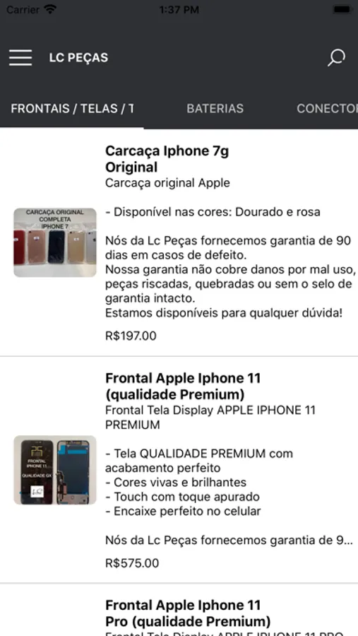 App para compra em atacado e varejo de peças e acessorios de celulares
