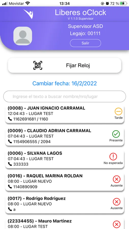 - Llegadas esperadas: mediante esta función oClock determina las horas de llegada a cada lugar para cada legajo en una semana completa. Oclock posee una segunda aplicación móvil para los supervisores del personal. Así la aplicación del supervisor compara las llegadas esperadas con las fichadas que se van registrando por el personal permitiendo monitorear llegadas (en punto o tarde) del personal y ausencias en línea, en el momento que se producen. En caso de empresas de personal eventual permite el reemplazo de ausentes de manera dinámica.