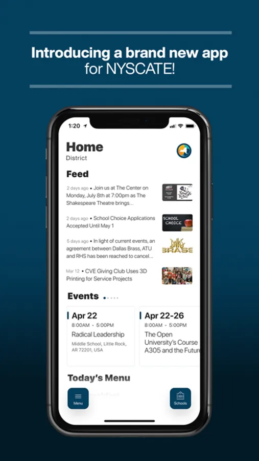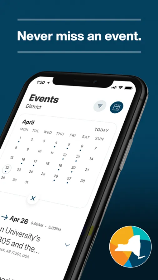 The event section shows a list of events throughout the district. Users can add an event to your calendar to share the event with friends and family with one tap.