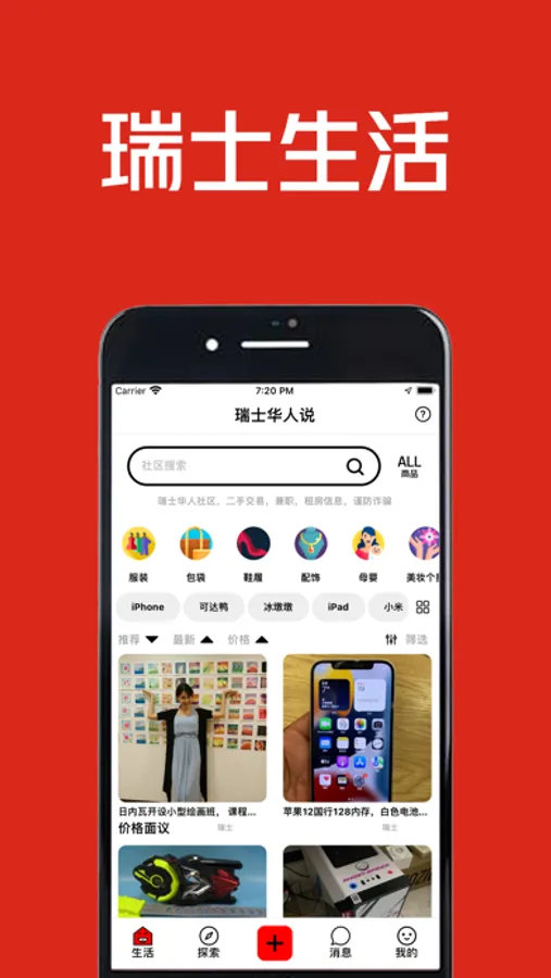 瑞士华人的生活社区,用户发布二手商品,生活服务,家政保姆,上门维修,民宿租房,兼职招聘等生活信息。