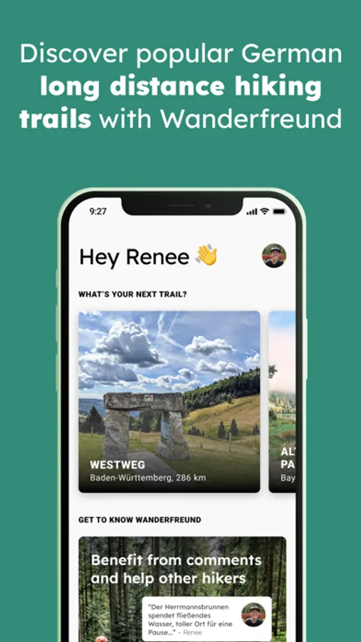 - Trails currently available in Wanderfreund: Rennsteig, Westweg, Hochrhöner, Weserberglandweg, Harzer Hexenstieg, Altmühltal Panoramaweg, Kammweg Erzgebirge-Vogtland. Many more are in the pipeline.