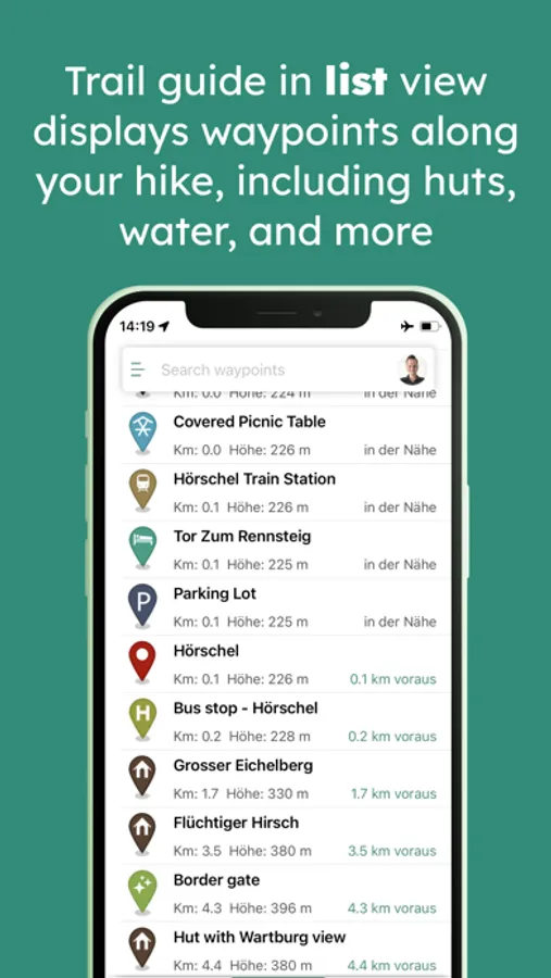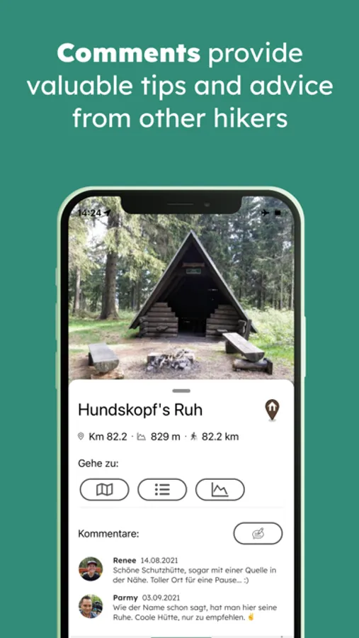- Access to a dedicated long-distance hiking community: share live information and updates about the trail and waypoints with other users via the comment feature.
